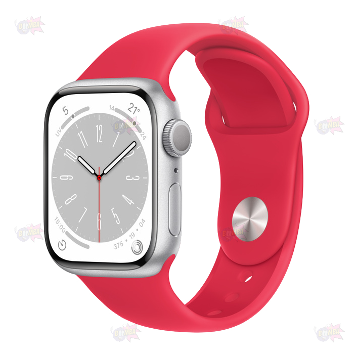 Apple Watch Series 8 GPS 45mm Alluminio Argento - Cinturino Sport Rosso - No Brand ITA