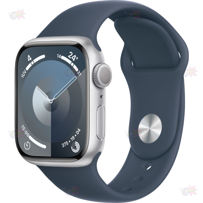 Apple Watch Series 9 GPS 45mm Alluminio Argento - Cinturino Sport Blu Tempesta - Taglia SM - No Brand ITA