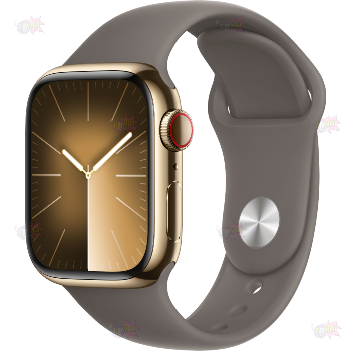 Apple Watch Series 9 GPS + CELLULAR 41mm Acciaio Inossidabile Gold - Cinturino Sport Grigio Creta - Taglia S/M - No Brand ITA